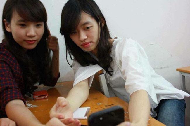 Hình ảnh ngày ấy của Khánh Linh (cô gái bên phải) cho thấy cô có vóc dáng khá gầy, gương mặt không đầy đặn và thon gọn V-line như bây giờ