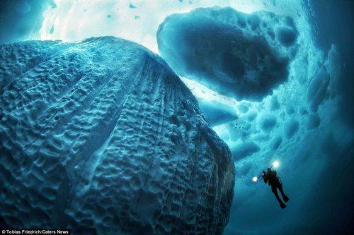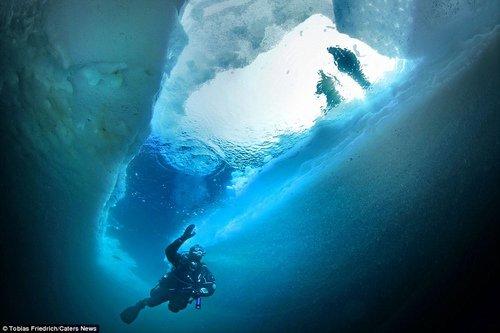 Tobias Friedrich, 35 tuổi, đã mạo hiểm cả tính mạng của mình để khám phá cho bằng được vẻ đẹp ẩn dưới mặt nước của một tảng băng trôi trông như thế nào. Và những hình ảnh thu mà nhiếp ảnh gia này ghi lại được vô cùng ngoạn mục.