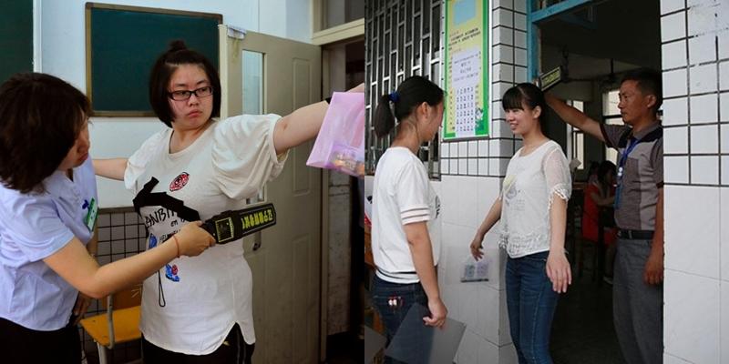 Trước khi thi, tất cả thí sinh còn phải trải qua quá trình kiểm tra nghiêm ngặt: nhận diện khuôn mặt, xác nhận vân tay, quét cơ thể qua thiết bị phát hiện kim loại, thậm chí cấm thí sinh nữ mặc áo ngực có móc kim loại.