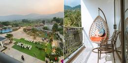 Khu bể bơi rộng 250m2, sân vườn thoáng đãng có thể tổ chức tiệc cho 20-30 người. Từ biệt thự có thể ngắm trọn view núi rừng xanh mát, hoàng hôn và bình minh.