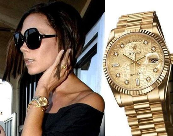 Bà mẹ 4 con Victora Beckham đeo đồng hồ vàng mặt đính kim cương của Rolex