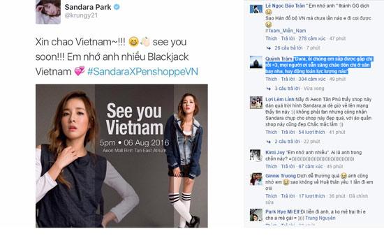 Hàng loạt các fanpage là FC của Sandara Park đã nhanh chóng chia sẻ làm “bùng cháy” cả mạng xã hội Facebook. Một fan hâm mộ nam còn chia sẻ với nội dung đáp lại dí dỏm: “Dara, ôi chúng em sắp được gặp chị rồi <3, mọi người ơi sẵn sàng chào đón chị ở sân bay nha, huy động toàn lực lượng nào”.