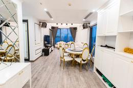 Toàn cảnh ngôi nhà chủ yếu lấy màu trắng làm màu chủ đạo kết hợp bọc viền vàng, làm tôn lên vẻ sang trọng của căn hộ.