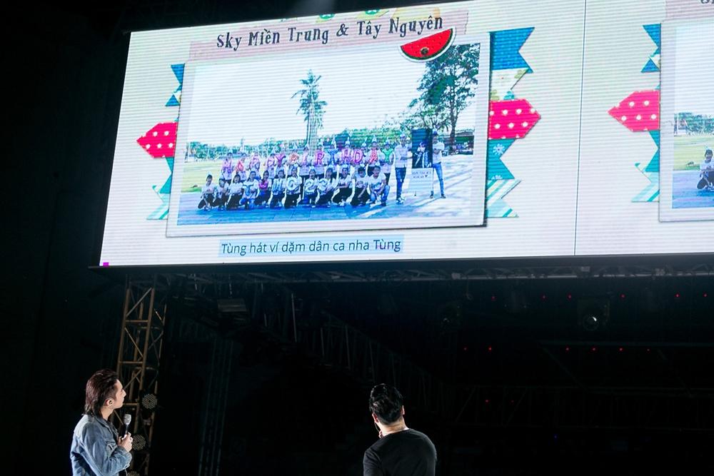 Liên tục là những món quà đặc biệt được đại gia đình Sky dành tặng "sếp'ss". Một đoạn clip ngắn thể hiện tình cảm của fan đối với thần tượng đã khiến Sơn Tùng M-TP không giấu nổi xúc động. Anh rơi nước mắt ngay trên sân khấu trong niềm hạnh phúc.