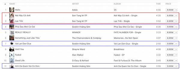 Chỉ xếp sau siêu hit đình đám Hello của Adele, Nơi này có anh cùng Lạc trôi giúp Sơn Tùng M-TP trở thành nghệ sĩ Việt hiếm hoi ở thời điểm hiện tại sở hữu đến 2 hit được mua nhiều nhất trên BXH Itunes Việt Nam, đã thế lại còn đứng ở vị trí lần lượt là thứ 2 và 3. Điều này góp phần khẳng định lượng fan “khủng” của Sơn Tùng - cộng đồng Sky đã đem đến những “giá trị thật” khi mà họ sẵn sàng bỏ tiền để nghe nhạc có bản quyền, ủng hộ thần tượng một cách chân chính.