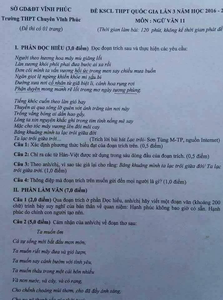 Cụ thể, đề thi ngữ văn này đã trích dẫn một số câu nói truyền cảm hứng của giọng ca gốc Thái Bình và nhóm 7 chàng trai BANGTAN để yêu cầu học sinh viết giải thích và nghị luận.