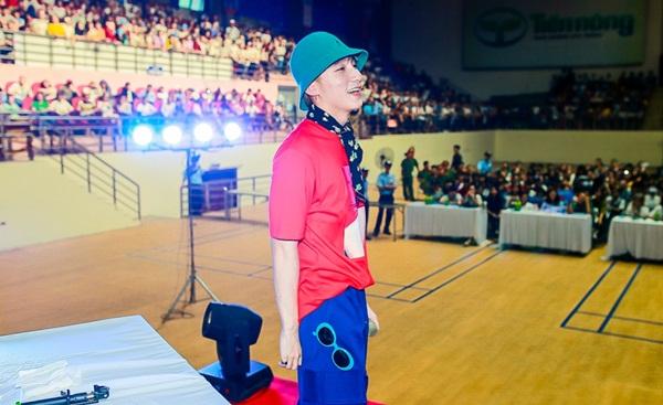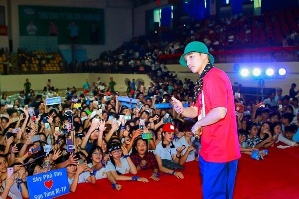 Tiếp tục gây ấn tượng với phong cách thời trang độc đáo, có 1-0-2, Sơn Tùng M-TP được fan Thanh Hóa chào đón cuồng nhiệt không kém các tỉnh thành trước. Nam ca sĩ mở màn buổi họp fan bằng ca khúc “Cơn mưa ngang qua” trong sự reo hò phấn khích của các fan khu vực phía Bắc.