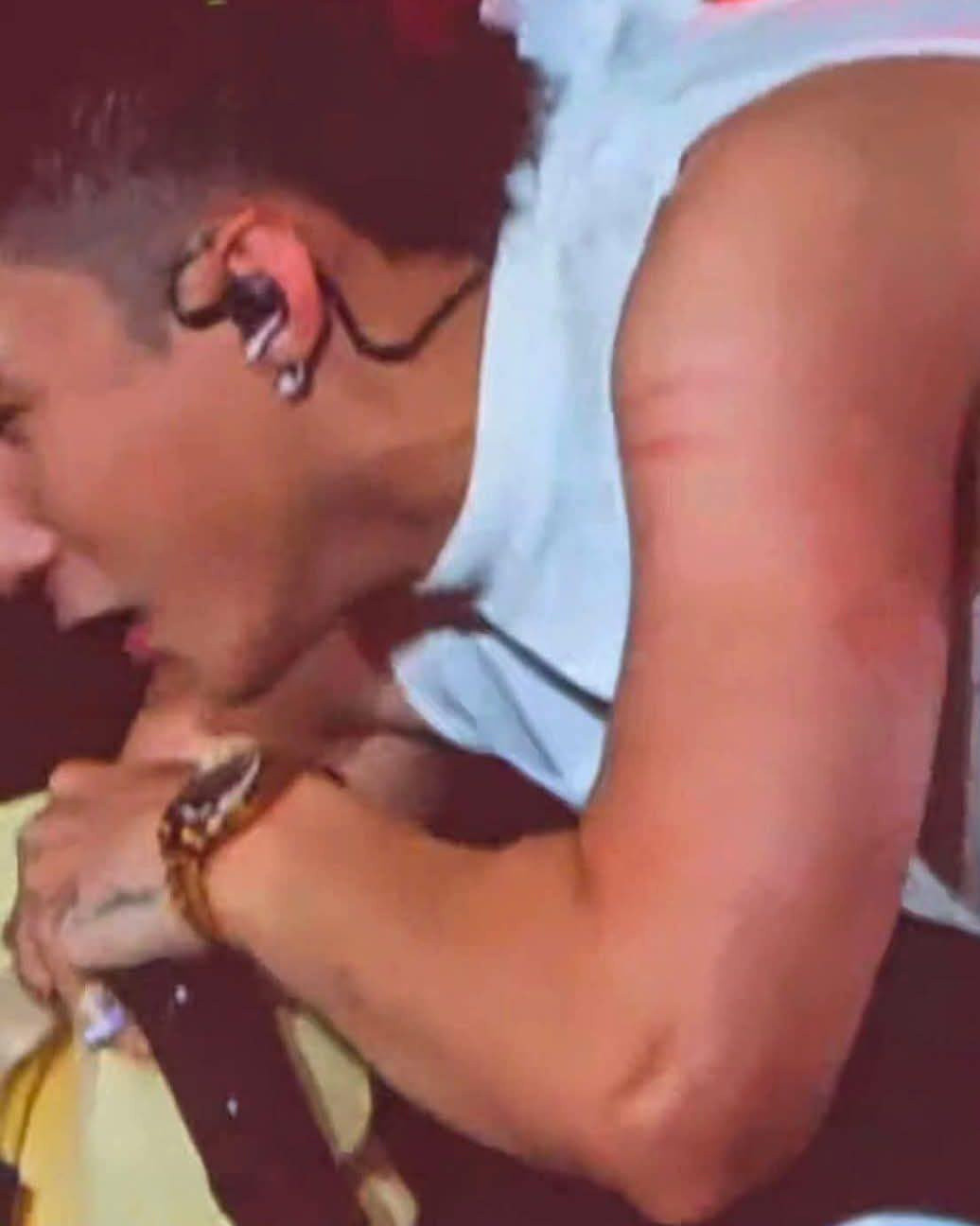Sau sự cố nói trên, trong một số ảnh, clip, bắp tay Sơn Tùng M-TP lộ rõ vết trầy giống bị cào.