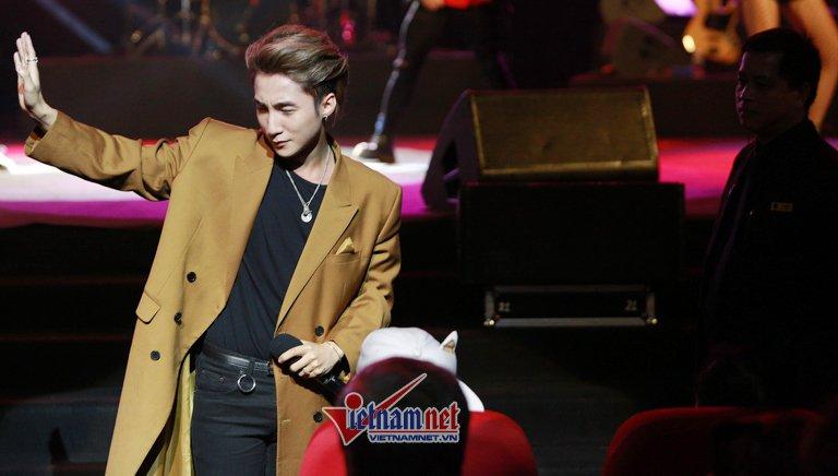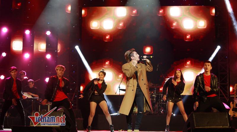 Trong đêm nhạc tối qua, Sơn Tùng MTP đã 'chiêu đãi' khán giả bằng loạt hit: Lạc trôi, Em của ngày hôm qua, Chắc ai đó sẽ về, Nơi này có anh. Khác với vẻ ngông nghênh trên sân khấu, nam ca sĩ trẻ tỏ ra khá ngượng ngùng khi được MC Thùy Linh dành nhiều khen tặng.