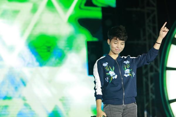 Xuất hiện trên sân khấu tối qua, Vũ Cát Tường diện trang phục đơn giản với quần jean và áo khoát phông cá tính. Cô nàng là nghệ sĩ nữ duy nhất tham gia chương trình nhưng vẫn thu hút và tỏa sáng với phong cách nam tính không thua kém các nam ca sĩ khác.