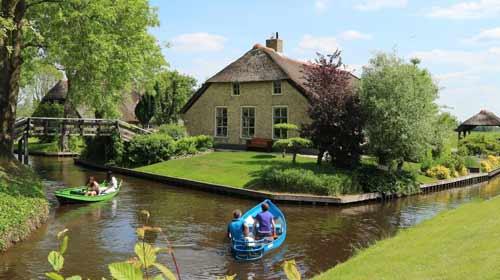 Giethoorn vốn là một ngôi làng không xe hơi (ngày nay có thêm đường dành cho xe đạp), với khung cảnh nên thơ và lãng mạn đến từng... xăng ti mét, là chốn thiên đường hạ giới mà du khách có thể mất cả ngày để khám phá và lãng du. Giethoorn không có hương vị buôn bán hối hả của Venice, cũng không có vẻ cổ kính trầm mặc của Amsterdam; Giethoorn yên bình và đắm mình trong tiếng hót véo von không ngớt của các loài chim.