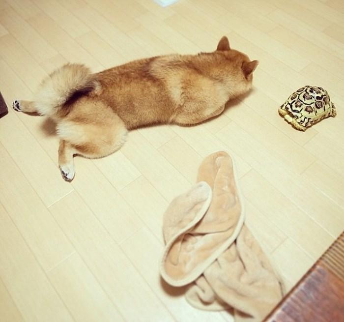 Ngày nay, việc các loài động vật khác nhau có thể bầu bạn, chơi đùa thậm chí giúp đỡ nhau trong cuộc sống đã không còn là điều hiếm gặp. Mỗi ngày sống cùng nhau, thường xuyên chơi đùa nên hành vi của chú chó Senbee và người bạn rùa Aosan cũng không mấy khác biệt.