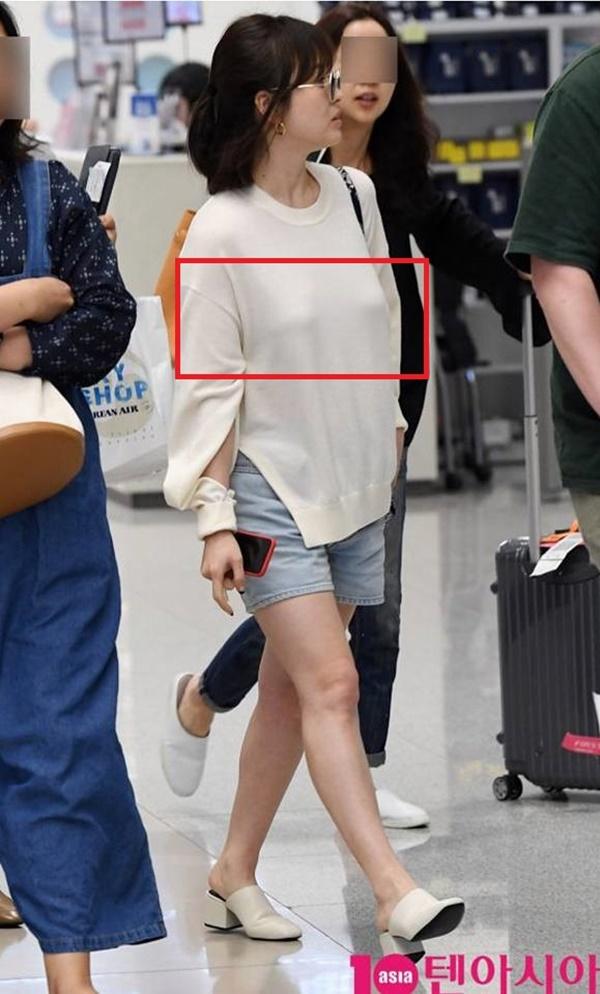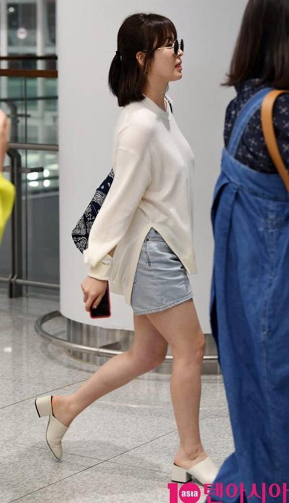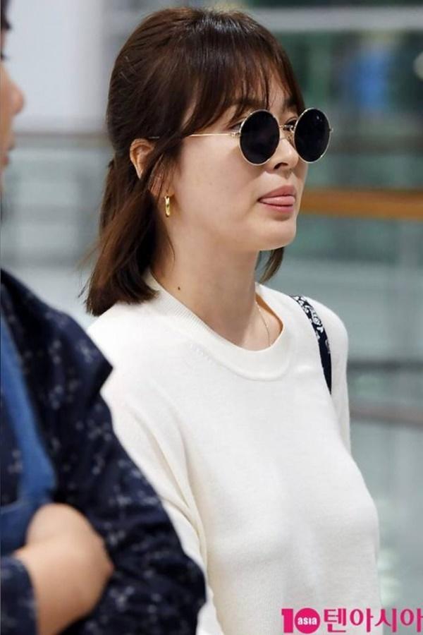 Sau khi hoàn tất công việc tại Hong Kong, vào ngày 2/6 vừa qua Song Hye Kyo đã bắt chuyến bay từ xứ Cảng thơm về Hàn Quốc. Xuất hiện trong trang phục áo thun rộng kết hợp với quần short jeans tươi trẻ, bà xã của Song Joong Ki giày cao gót đế vuông để tăng chiều cao.