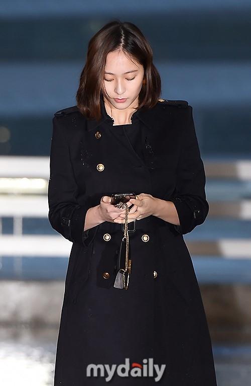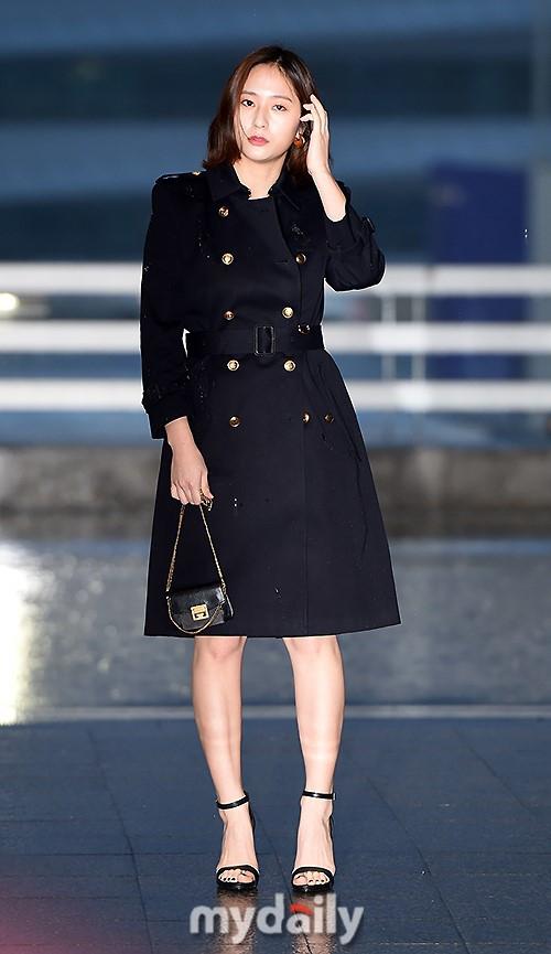Krystal sang chảnh với áo trench coat dáng dài mặc thành váy.