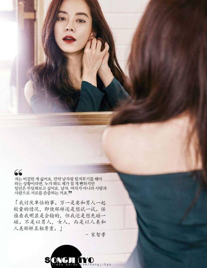 Sắp tới đây, “nữ thần mặt mộc Running man” - Song Ji Hyo sẽ tái xuất với một dự án phim mới, trong đó cô vào vai một người phụ nữ bị chồng lừa dối vì ngoại tình. Khi được phỏng vấn nữ diễn viên sẽ làm thế nào nếu chuyện đó xảy ra với cô trong đời thực, Song Ji Hyo đã khiến nhiều người bất ngờ khi thành thực đáp: “Tôi không nghĩ có thể dễ dàng từ bỏ người bạn đời mà mình đã ở bên suốt một thời gian dài chỉ vì một lỗi lầm của anh ta”.