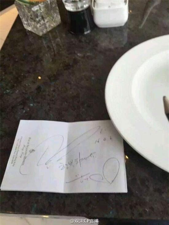 Nam diễn viên "Hậu duệ của mặt trời" để lại chữ ký trên bàn ăn
