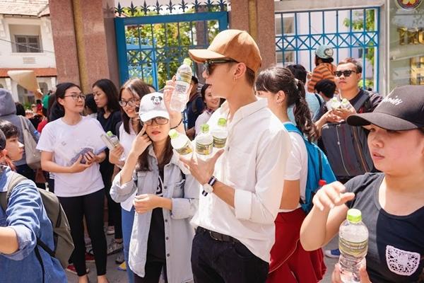 Trong ngày đầu tiên phát nước cho các bạn sĩ tử, Soobin Hoàng Sơn đều có mặt tại điểm trường từ sáng sớm và đầu giờ chiều. Dù nắng nóng nhưng chàng ca sĩ trẻ luôn tươi cười. Nhiều sĩ tử nhận ra Soobin cũng hào hứng chụp ảnh cùng trước khi bước vào phòng thi.