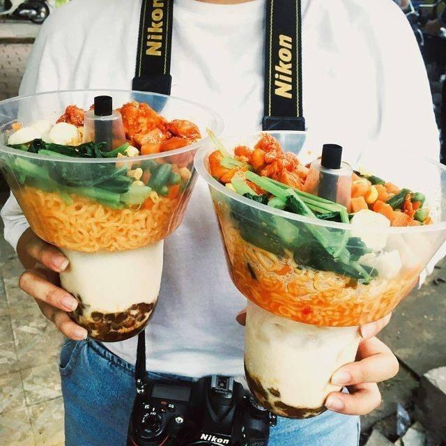 Chỉ là mì gói thôi mà cũng gây nghiện như thế này đây! Mì được trụng sơ qua nước và trộn với các gia vị có sẵn, ăn kèm với trứng (chiên hoặc luộc), xúc xích, cá viên, rau củ,… Nếu ngán cơm mà đang muốn đổi gió thì đây sẽ là lựa chọn không thể bỏ qua đâu nha!