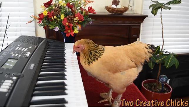 Đoạn clip dài hơn 2 phút ghi lại hình ảnh một con gà mái chơi piano bằng cách gõ mỏ vào các phím đàn đang được chia sẻ rầm rộ. Đoạn clip này được đăng trực tuyến trên trang mạng xã hội Two Creative Chicks.