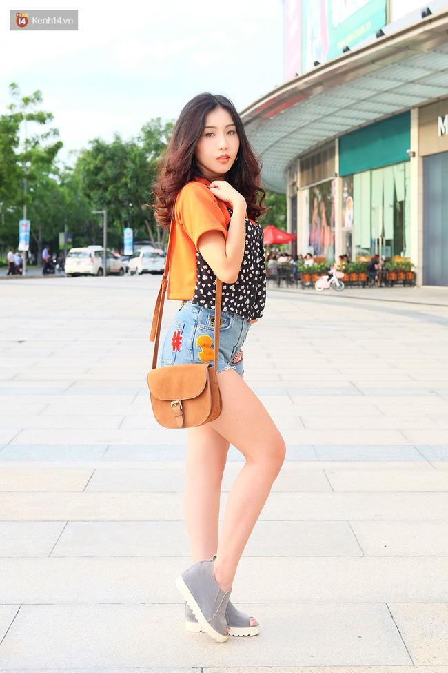 Mai Fin khoe chân dài với shorts siêu ngắn mix cùng crop top "nửa nọ nửa kia" rất lạ mắt.