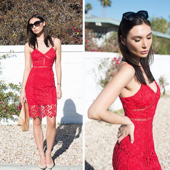 Tienlyn đến từ San Francisco lựa chọn váy ren đỏ gợi cảm và quyến rũ.