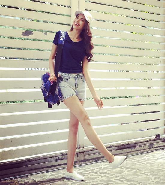 Hoa hậu Phạm Hương xuống phố năng động, khỏe khoắn với áo phông cổ tim,