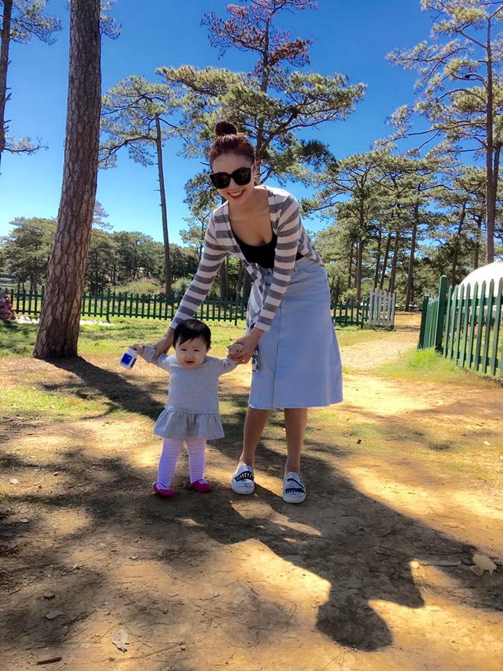 Tới Đà Lạt, Ninh Dương Lan Ngọc chọn áo cardigan khoác ngoài áo hai dây.