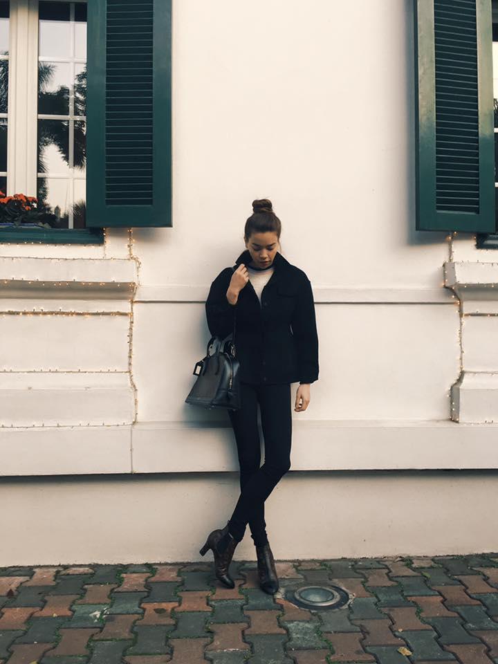 tông đen cũng được cô khéo kết hợp cùng với nhau.