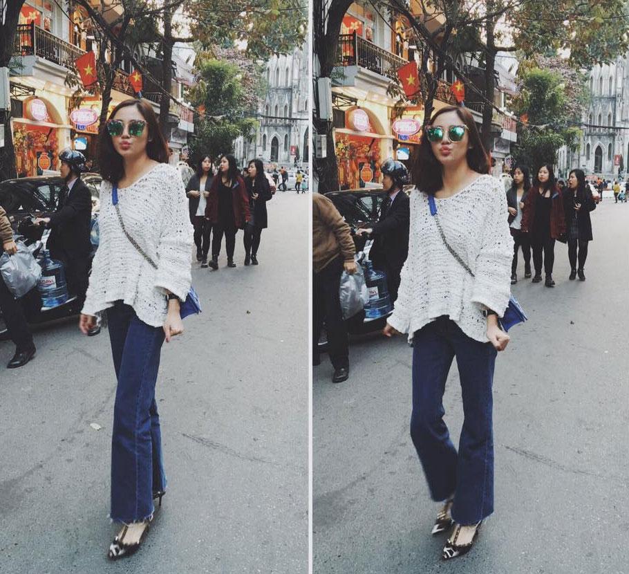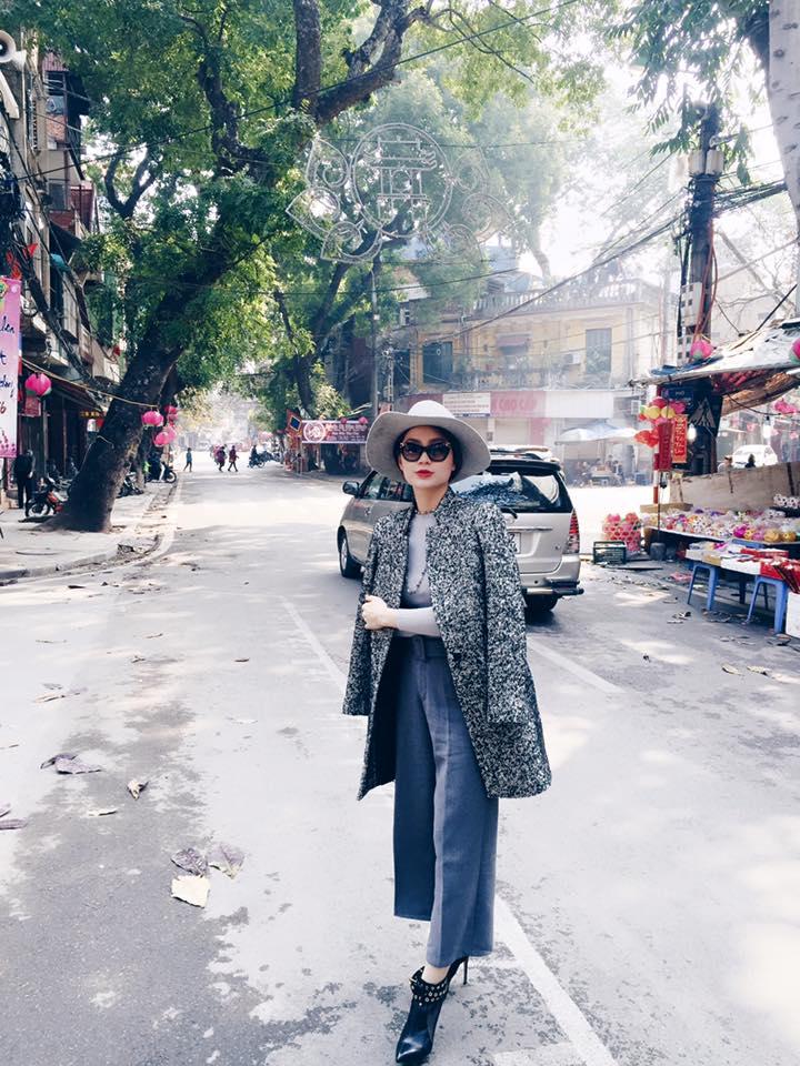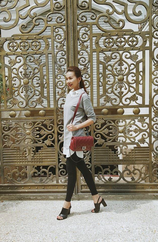 Thanh Hằng xuống phố với phong cách layer thời thượng. Sở hữu chiều cao lý tưởng