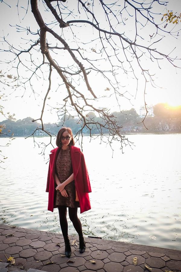 Áo khoác dạ tông màu đỏ ấm áp và may mắn được Tóc Tiên khoác ngoài