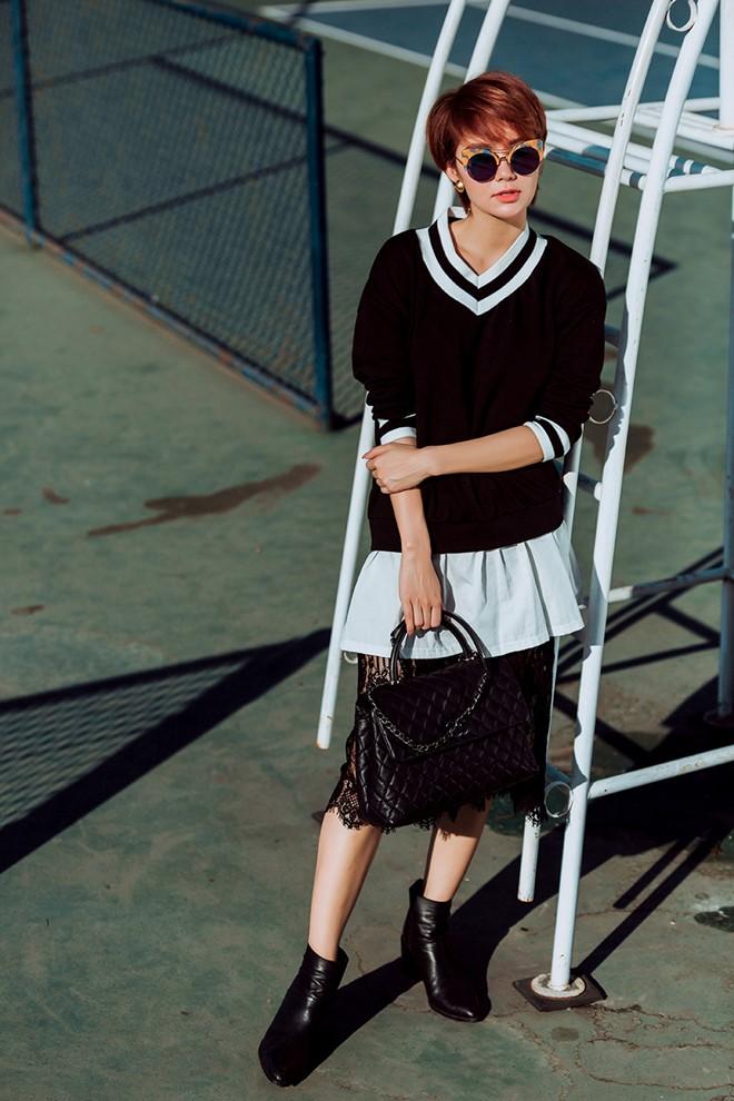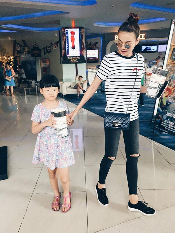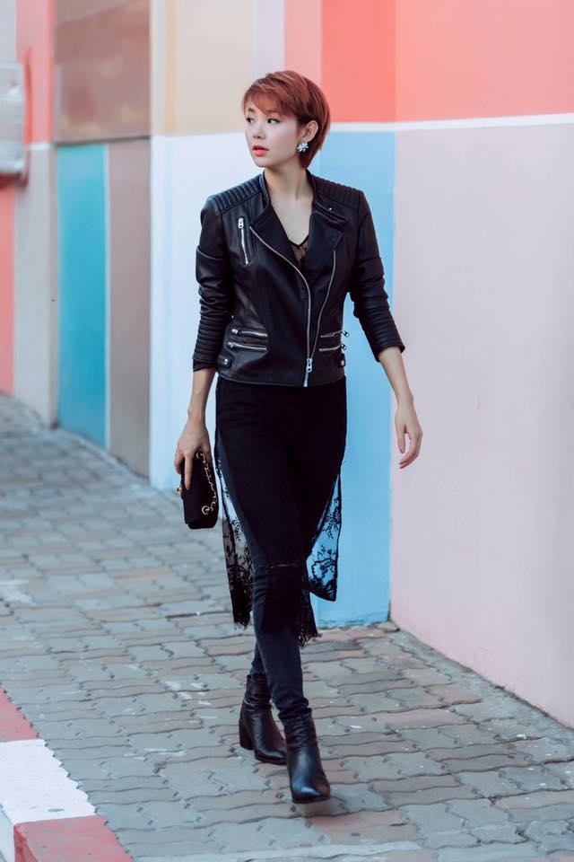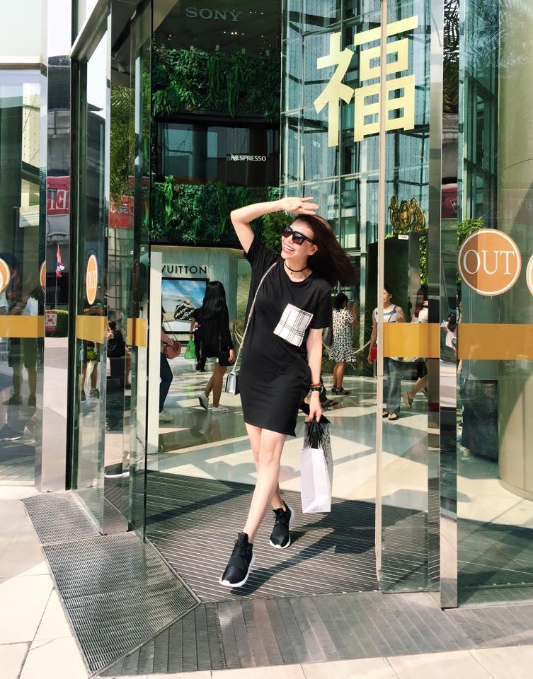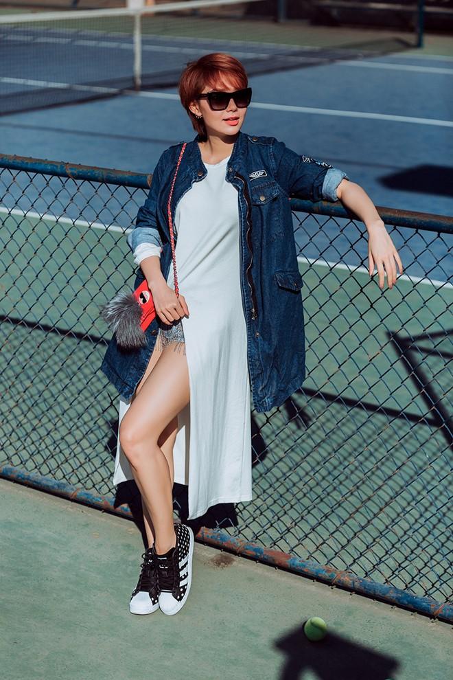 Thanh Hằng đơn giản, cá tính với set đồ thường thấy khi xuống phố là áo phông