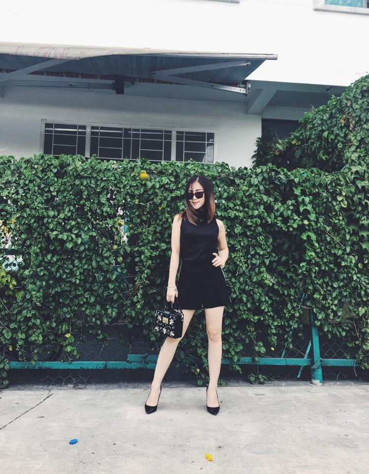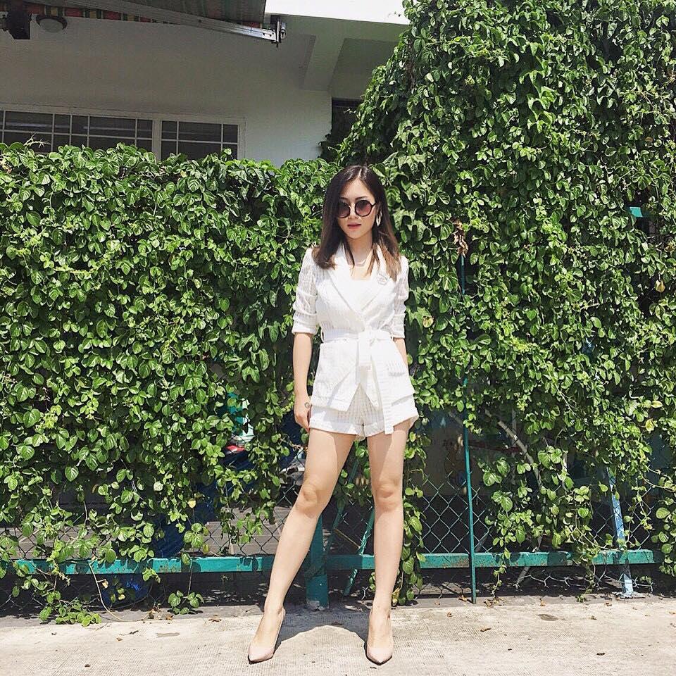 với áo sát nách, quần short. Túi xách hàng hiệu và đôi sandals lưới cũng là