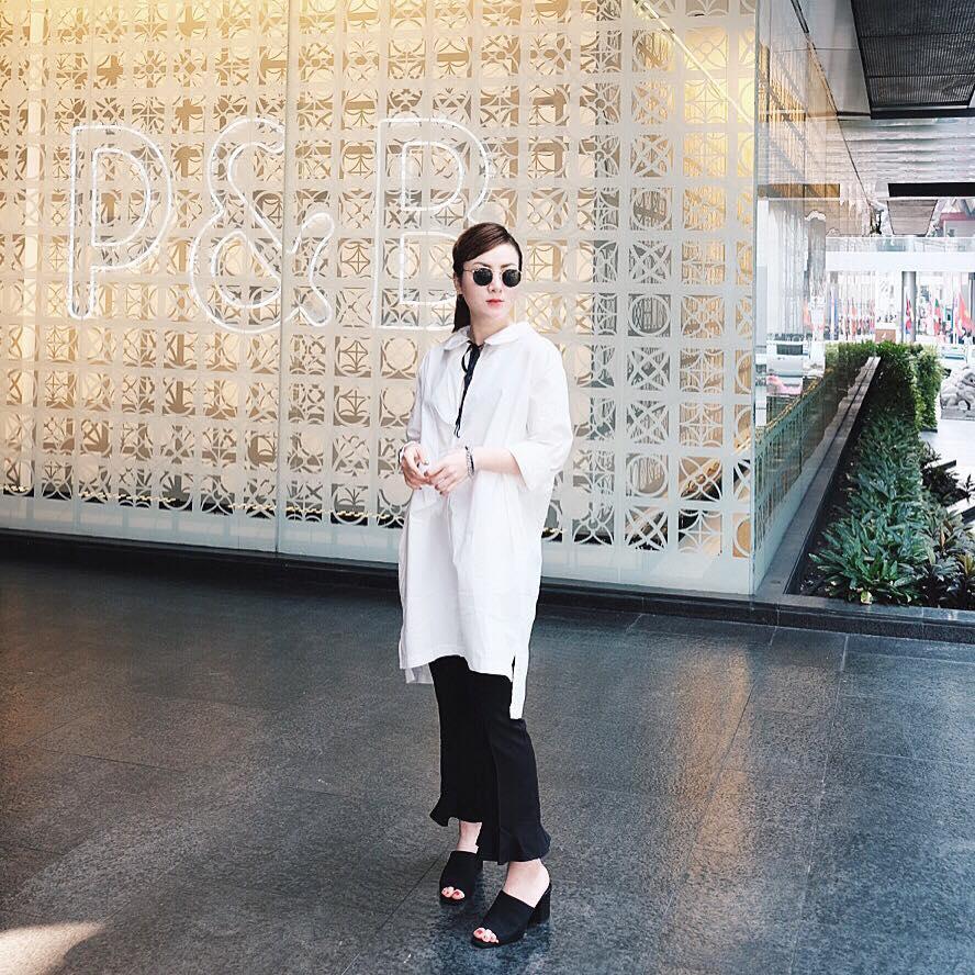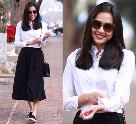 Dương Mỹ Linh trẻ trung, thanh lịch khi diện áo sơ mi trắng mix cùng chân váy