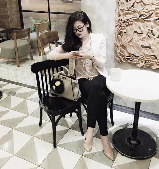 Đi cà phê cùng bạn, cô nàng lại chọn set đồ đơn giản là áo kiểu cách điệu,