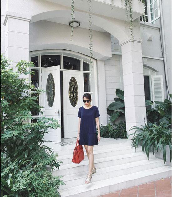 Tăng Thanh Hà xuất hiện với style thanh lịch thường thấy là váy liền thân dáng