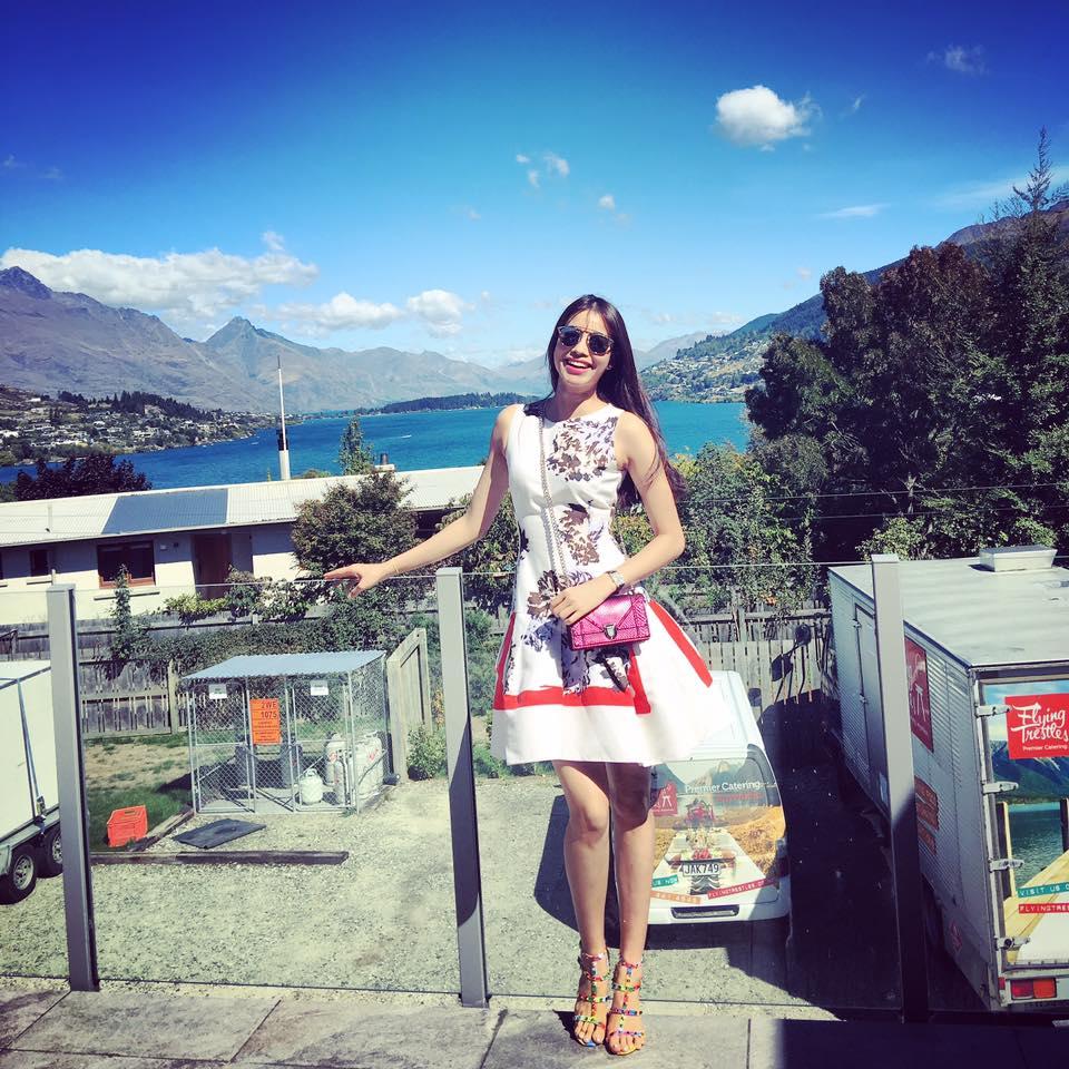 Váy vóc điệu đà là item không thể thiếu khi Phạm Hương dạo phố. Có lúc hoa hậu chọn váy họa tiết ngắn, thiết kế trẻ trung, bắt mắt khi lại mix chân váy đen cùng áo trắng thanh lịch.