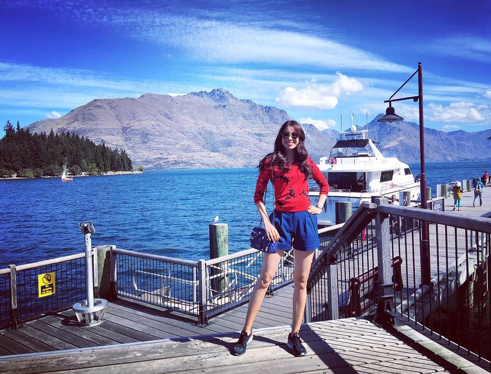 Bên cạnh đó, áo phông, quần short, quần skinny đơn giản lại mang đến cho Phạm Hương style năng động, khỏe khoắn.