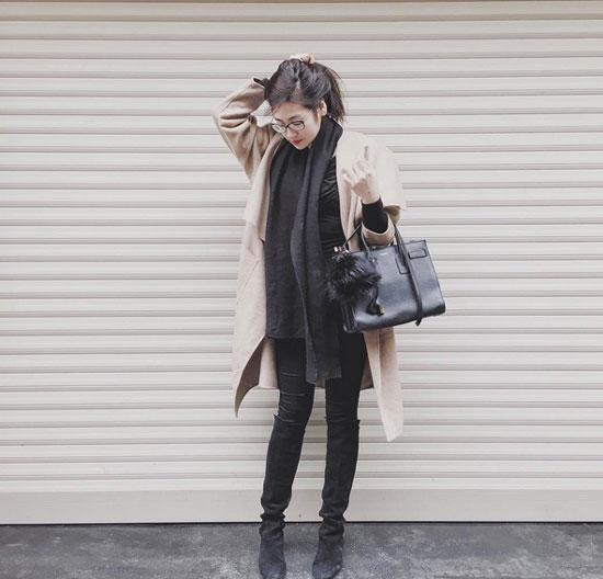 Tú Anh ấm áp xuống phố với áo khoác, quần skinny và boots.