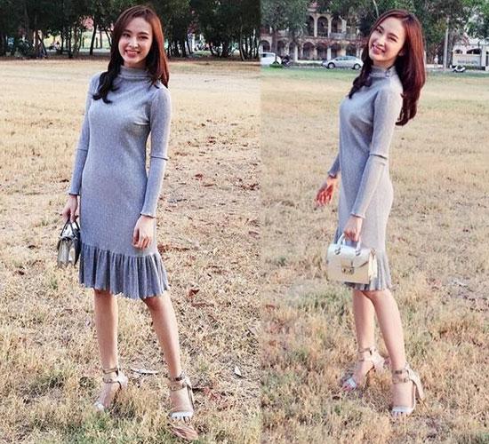 Nam Em khoe vóc dáng nhỏ nhắn và chân dài miên man với váy liền thân hạ eo dáng ngắn.