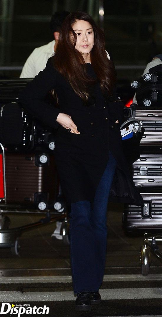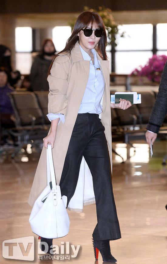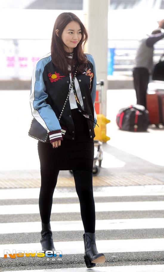 Park Shin Hye dù mặc trang phục đơn giản với quần skinny đen kết hợp áo