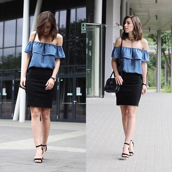 Quý cô Perventina Ols ở Moscow, Nga đẹp ngọt ngào ra phố với bộ đồ áo trễ vai họa