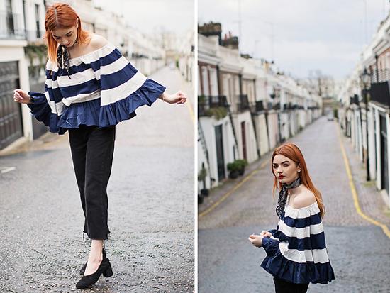 Blogger thời trang Hannah Louise 22 tuổi đến từ London lựa chọn áo trễ vai
