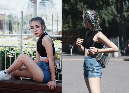 Nữ sinh viên Kimberly Kong ở Anh nữ tính và trẻ trung với áo ba lỗ đen, chân