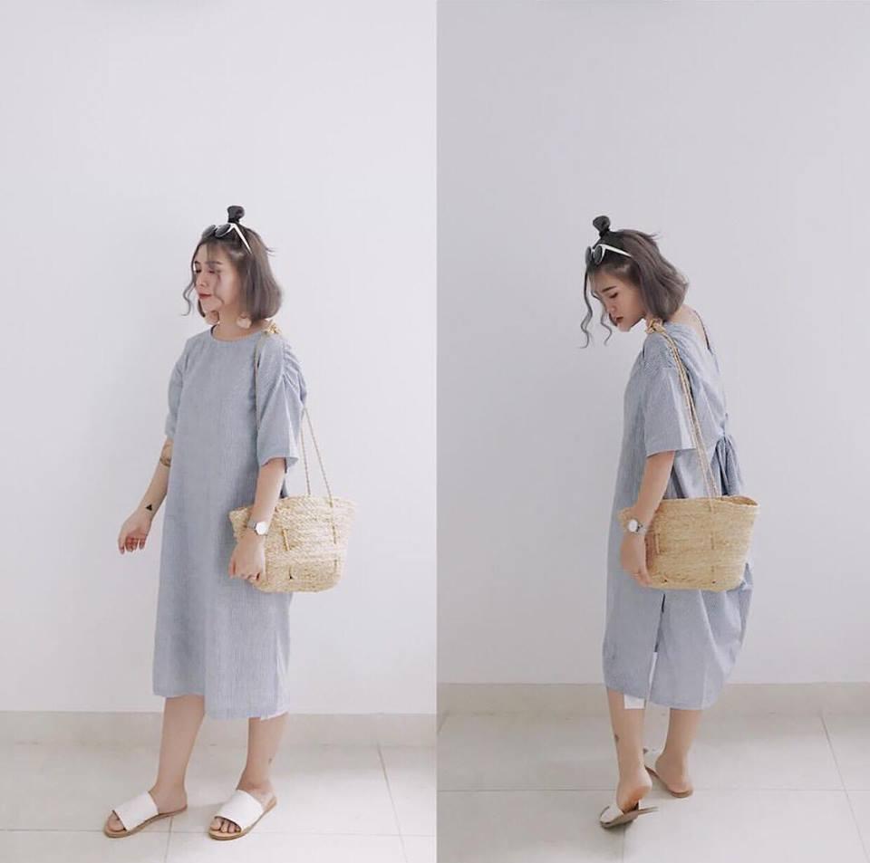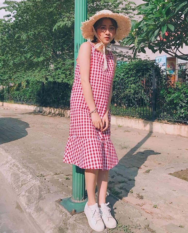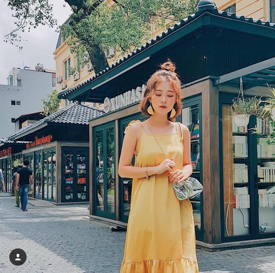 Ở tuổi 30, An Nguy vẫn rất đáng yêu, tinh nghịch với váy suông 2 dây và giày slip-on xuống phố