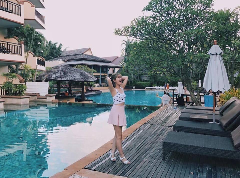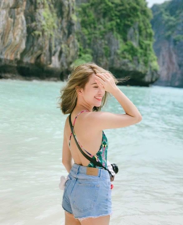 Cô nàng tràn đầy năng lượng tận hưởng kì nghỉ dưỡng. Bộ đôi chân váy mini + áo croptop/áo sơ vin giúp nữ MC "ăn gian" chiều cao đáng kể.