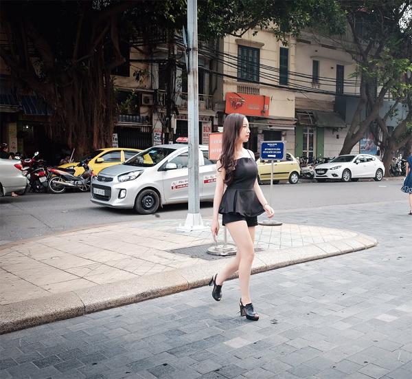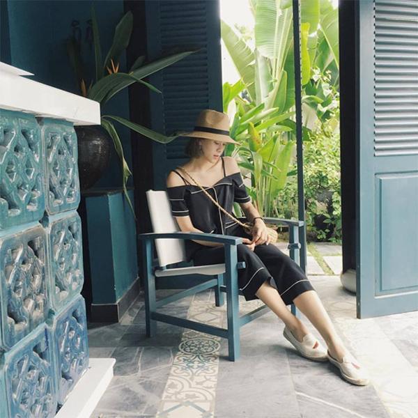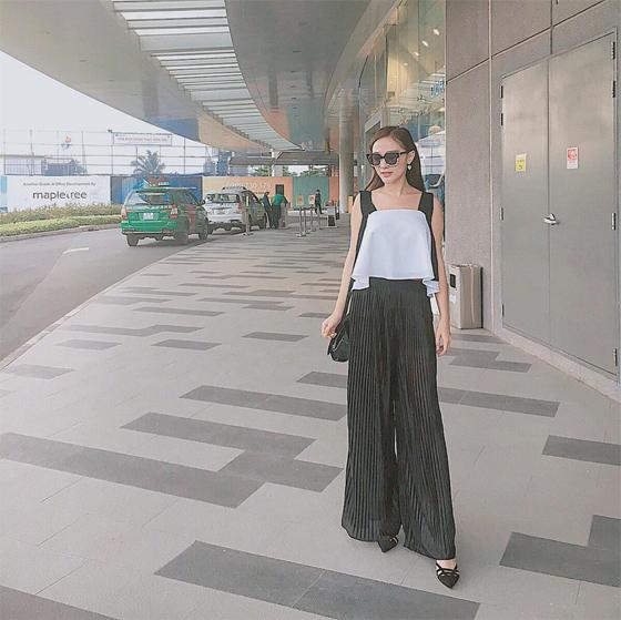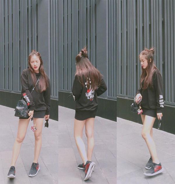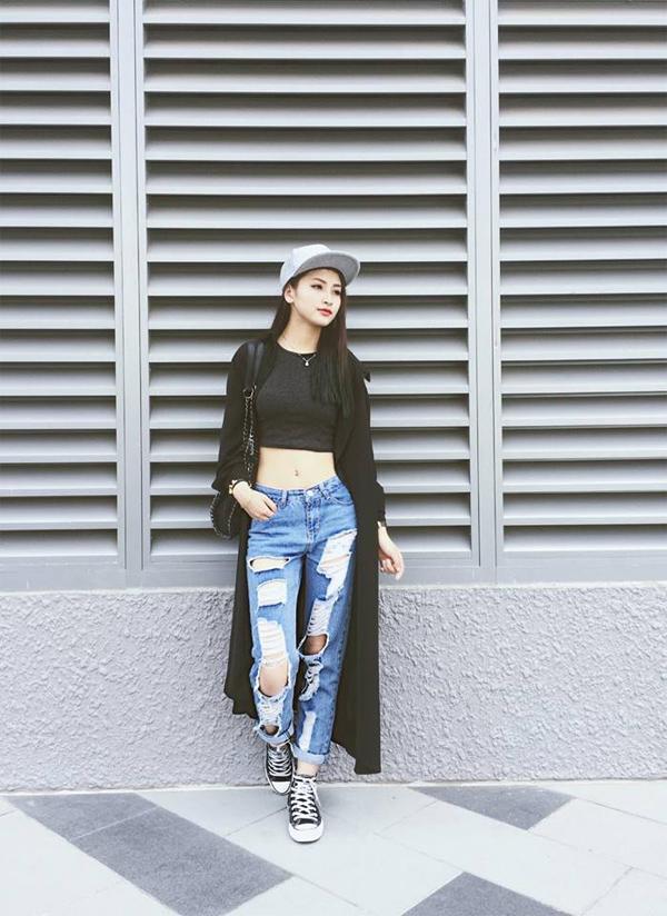Màu đen là gam chủ đạo trong set đồ của hot girl Phương Ly. Những bạn gái