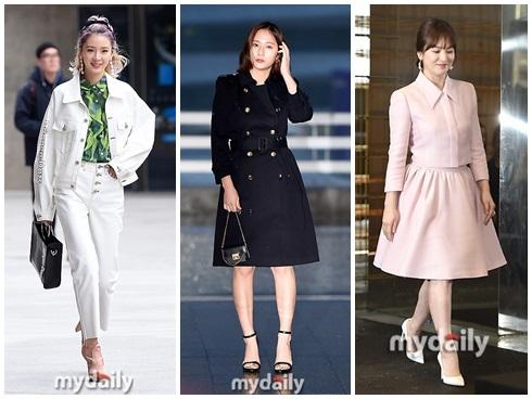 Trong khí đó, Krystal lại kín đáo với công thức mix đồ kéo dài chân áo ôm sát phối với quần ống rộng cạp cao.