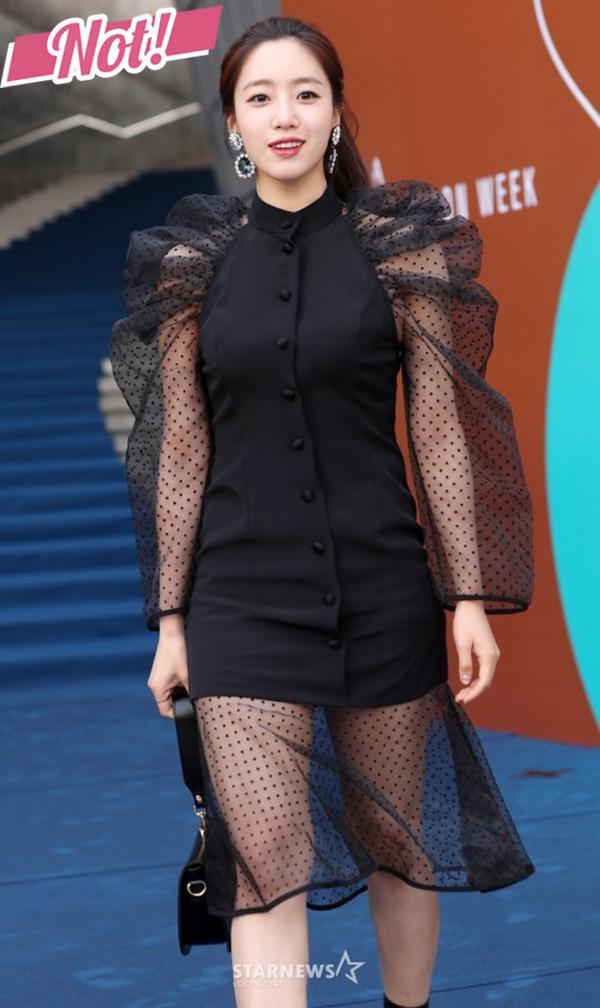 Eunjung rườm rà trong thiết kế váy đen đáp ren thừa chi tiết.