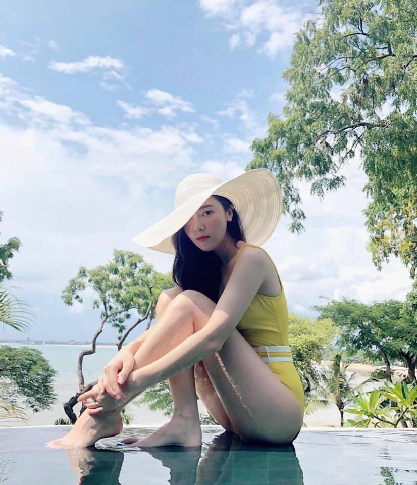 Jessica khoe vóc dáng nuột nà cùng làn da trắng hồng trong bộ bikini vàng rực rỡ.