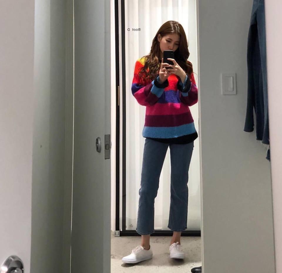 Suzy giản dị vẫn thu hút cùng áo len quần jeans, giầy thể thao.